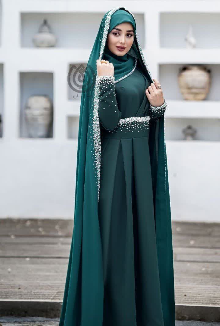 چادر عروس جواهر دوزی شده (مروارید سنگی و کریستال)